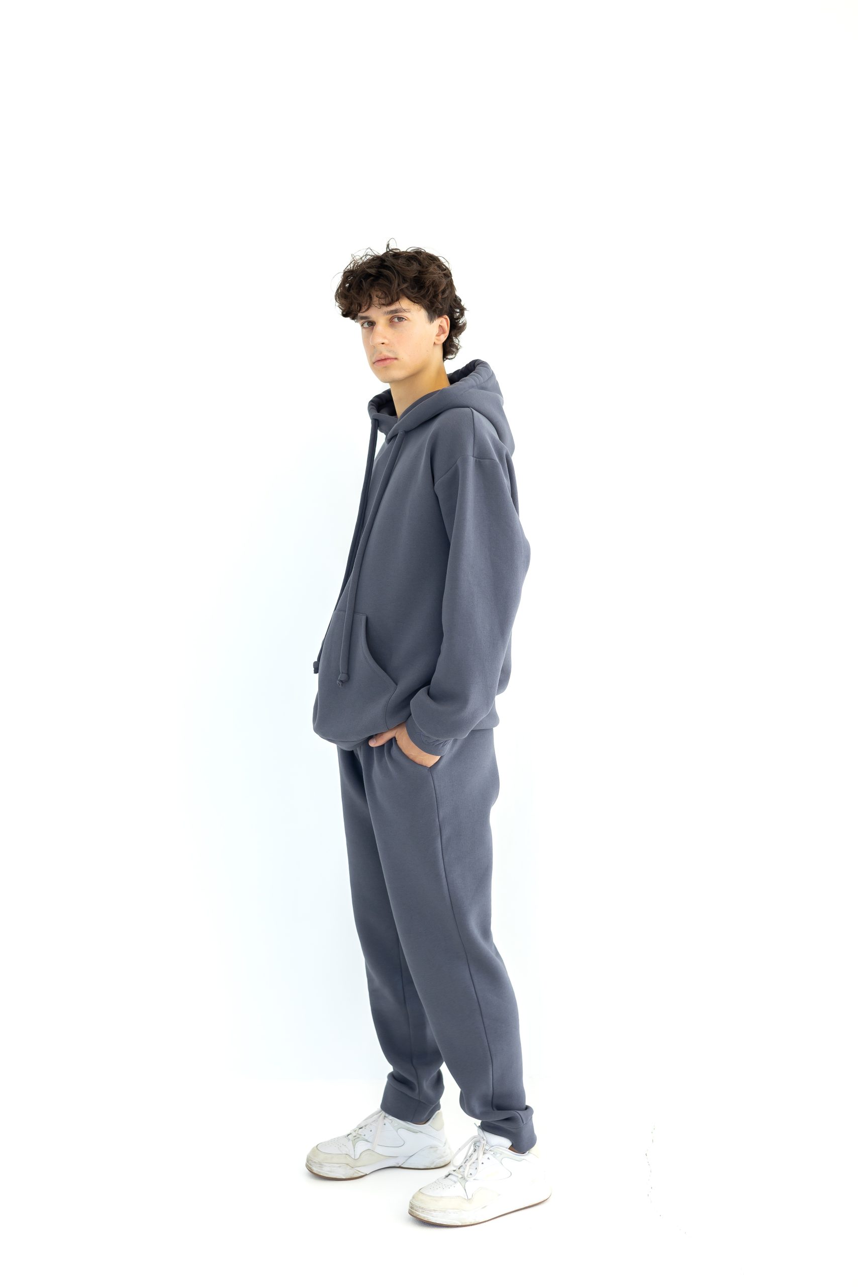 70% kokvilna, 30% poliesters. OEKO-TEX® sertificēts audums. Siltināts trīs diegu trikotāžas materiāls ar mīkstu pūciņu iekšpusē.