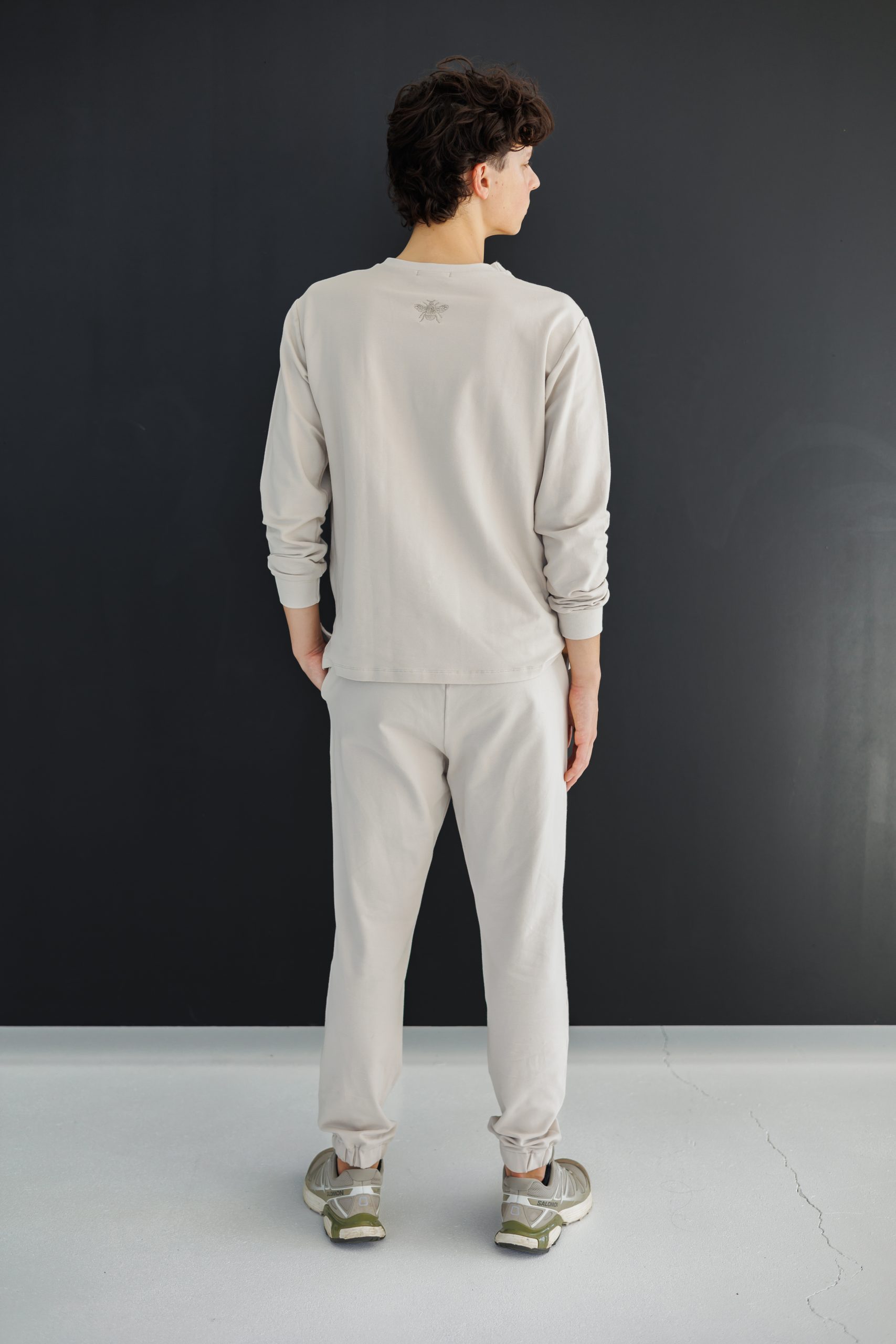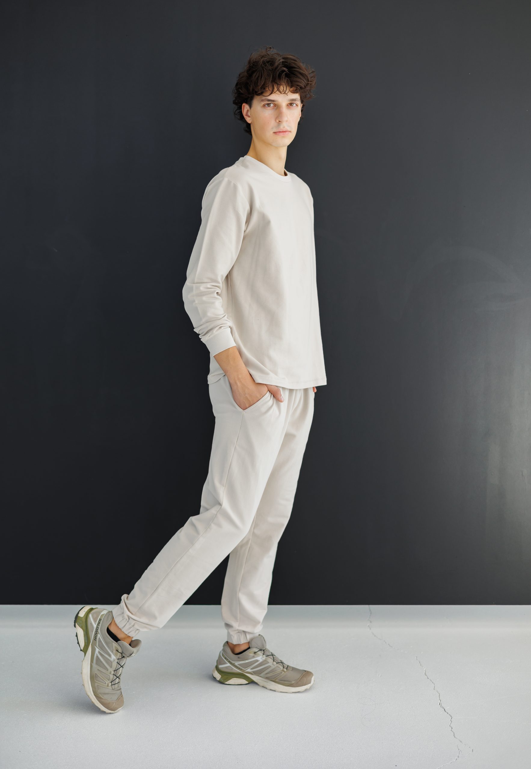 Modelim: Svitšots L izmērs, Bikses L izmērs. Modeļa parametri: auguma garums 185cm, krūšu apkārtmērs 91cm, viduklis apkārtmērs 79cm, gurni apkārtmērs 103cm.