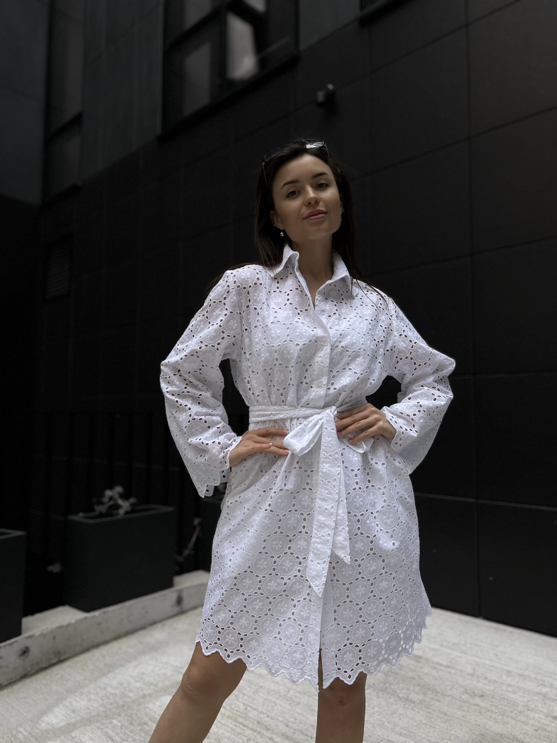 - Brīva piegriezuma kleita ar garām paplatinātām piedurknēm.