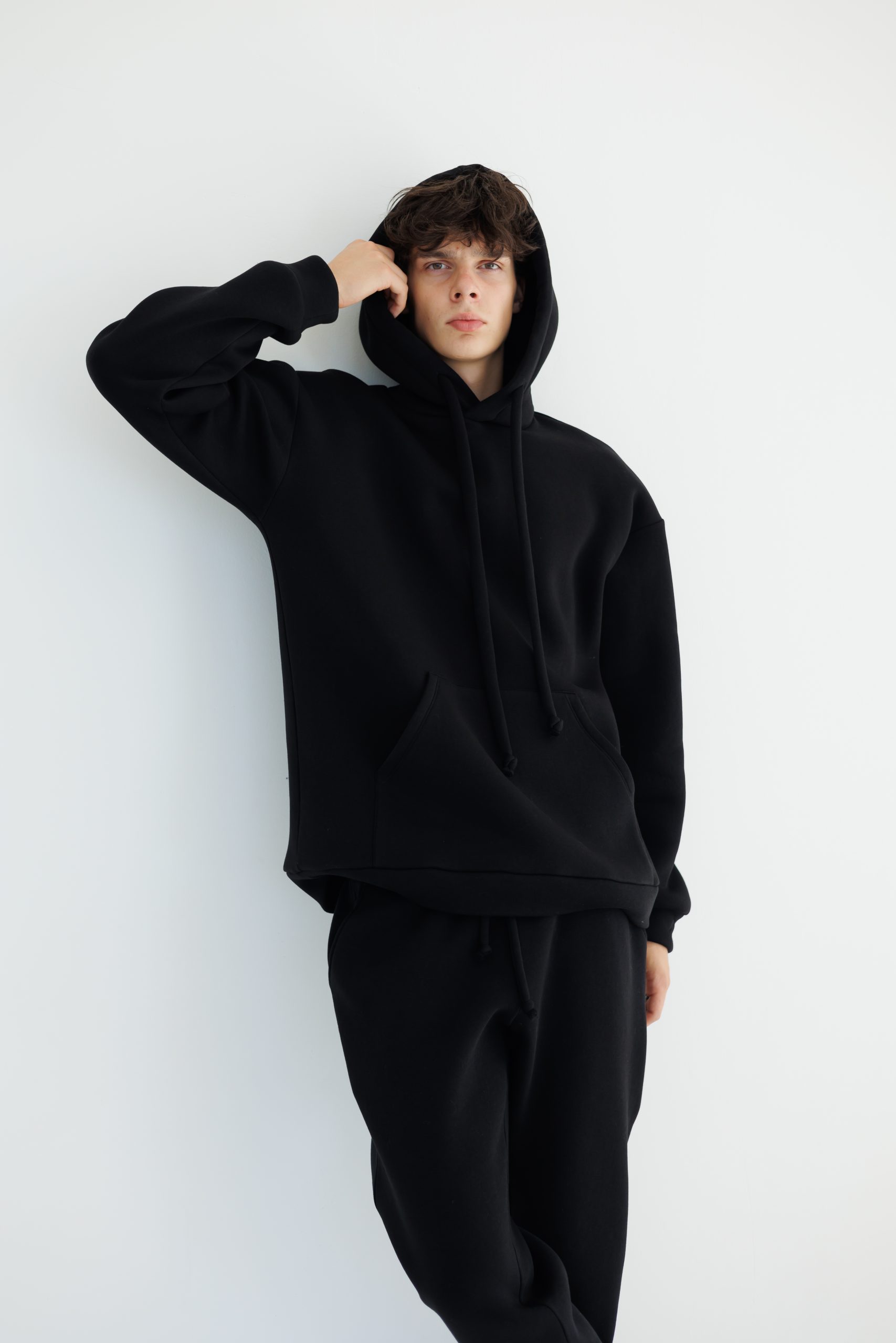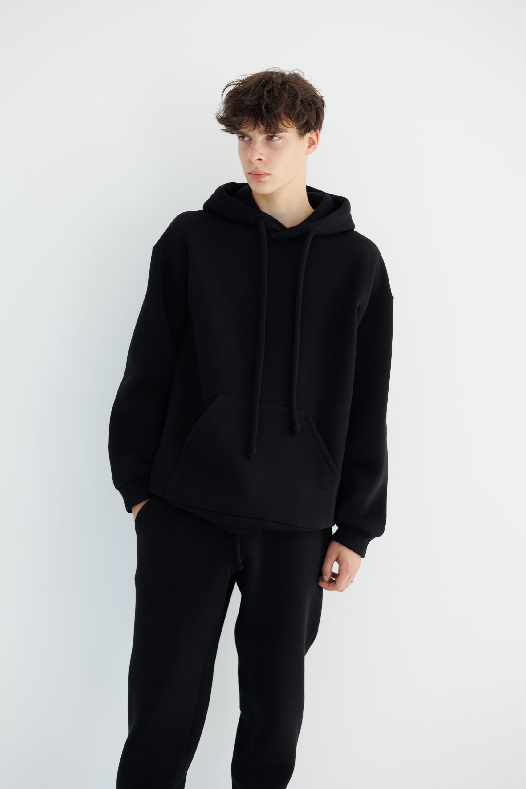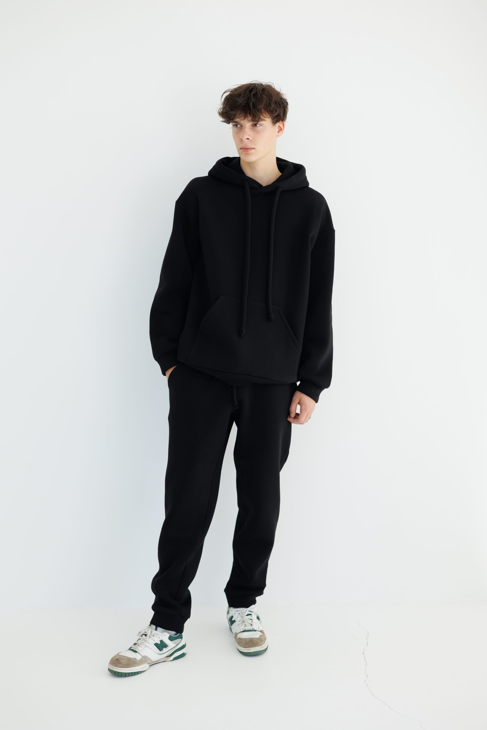 70% kokvilna, 30% poliesters. OEKO-TEX® sertificēts audums. Siltināts trīs diegu trikotāžas materiāls ar mīkstu pūciņu iekšpusē.