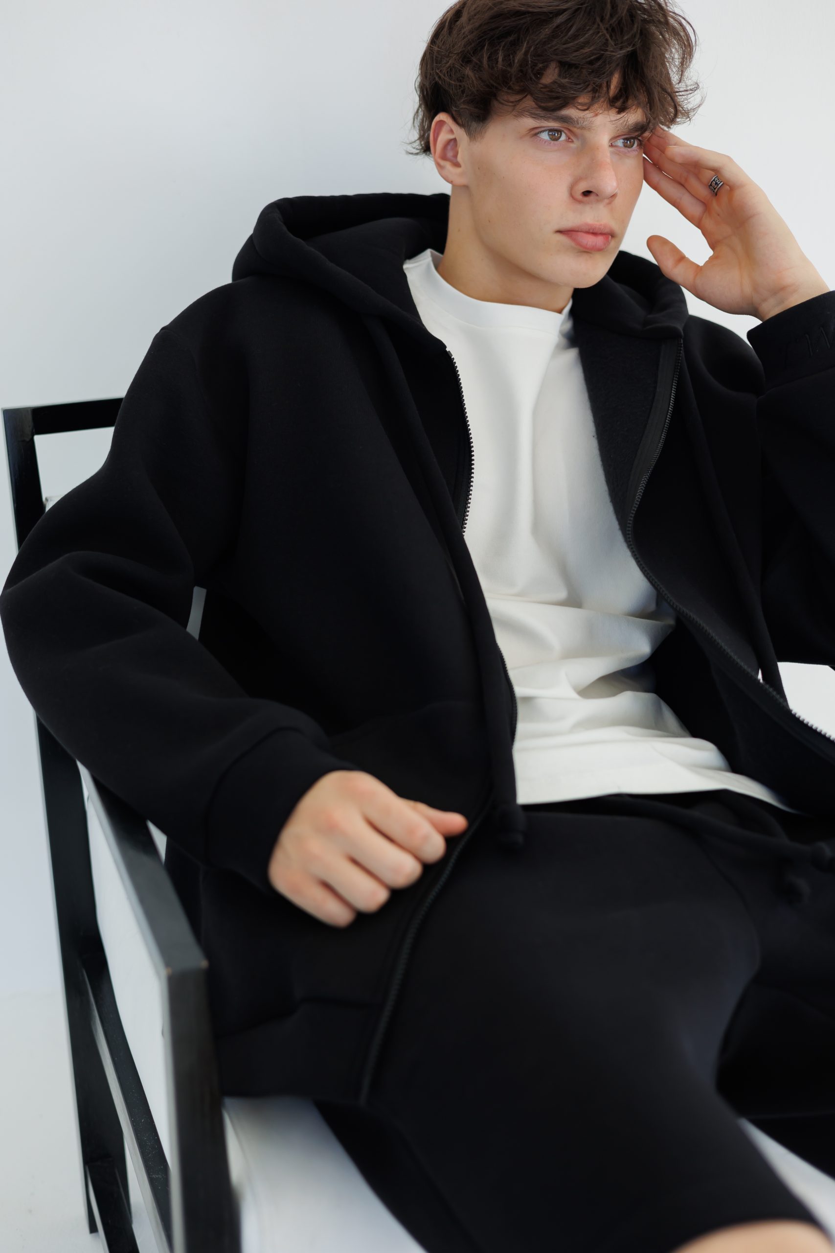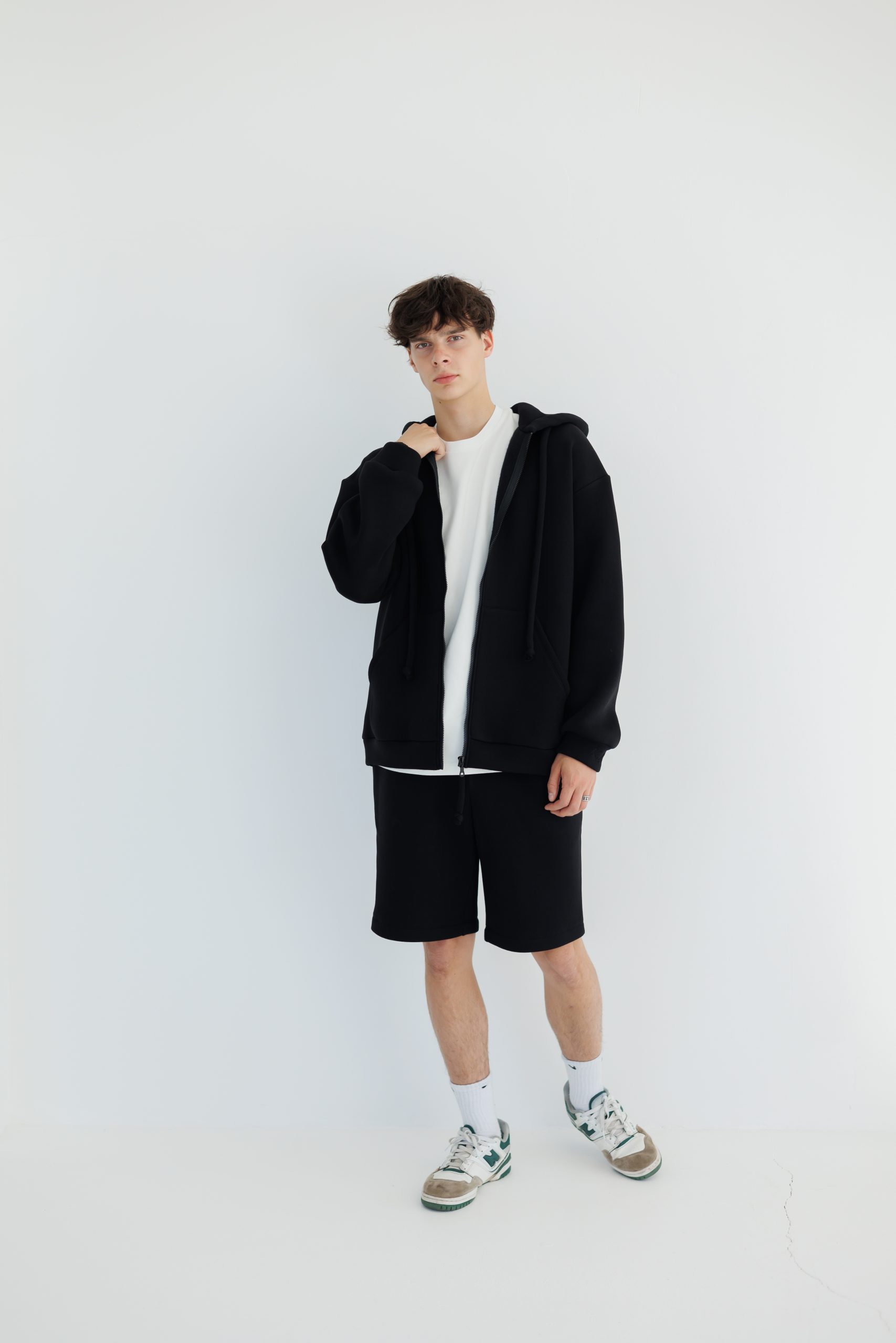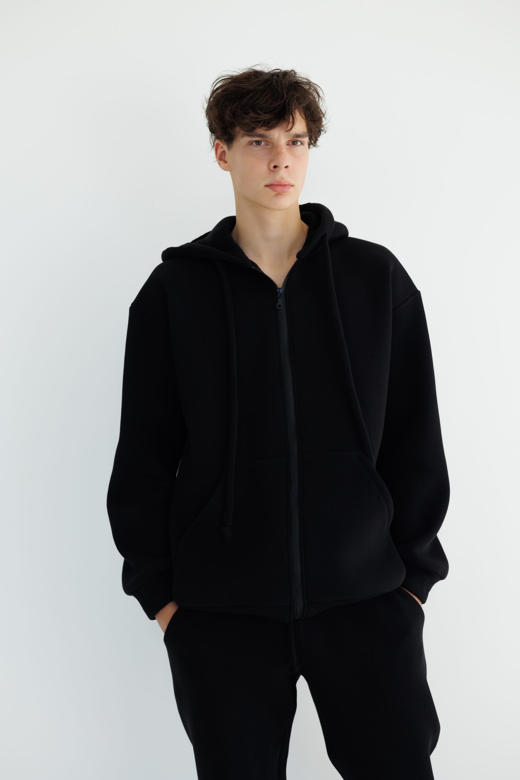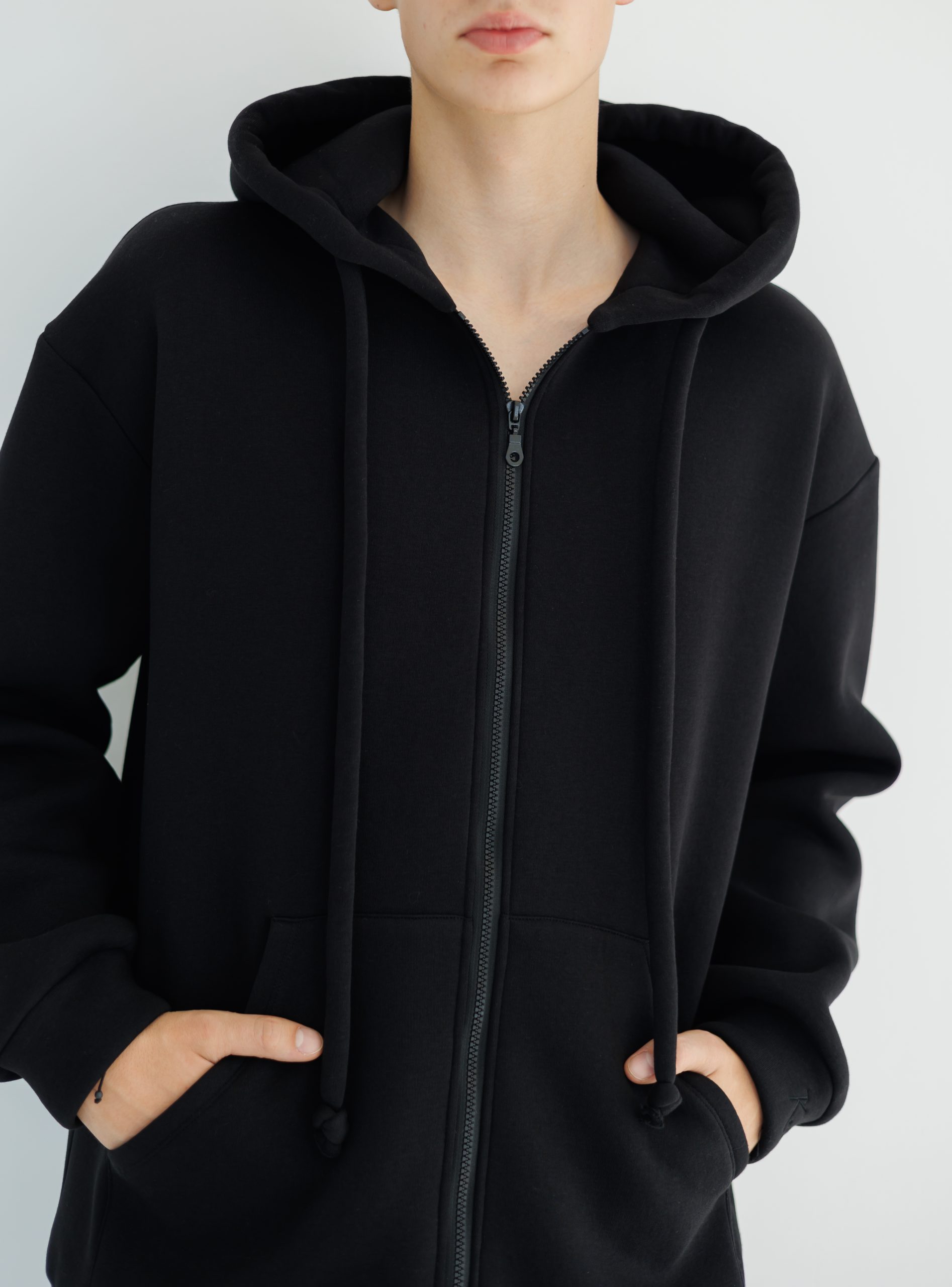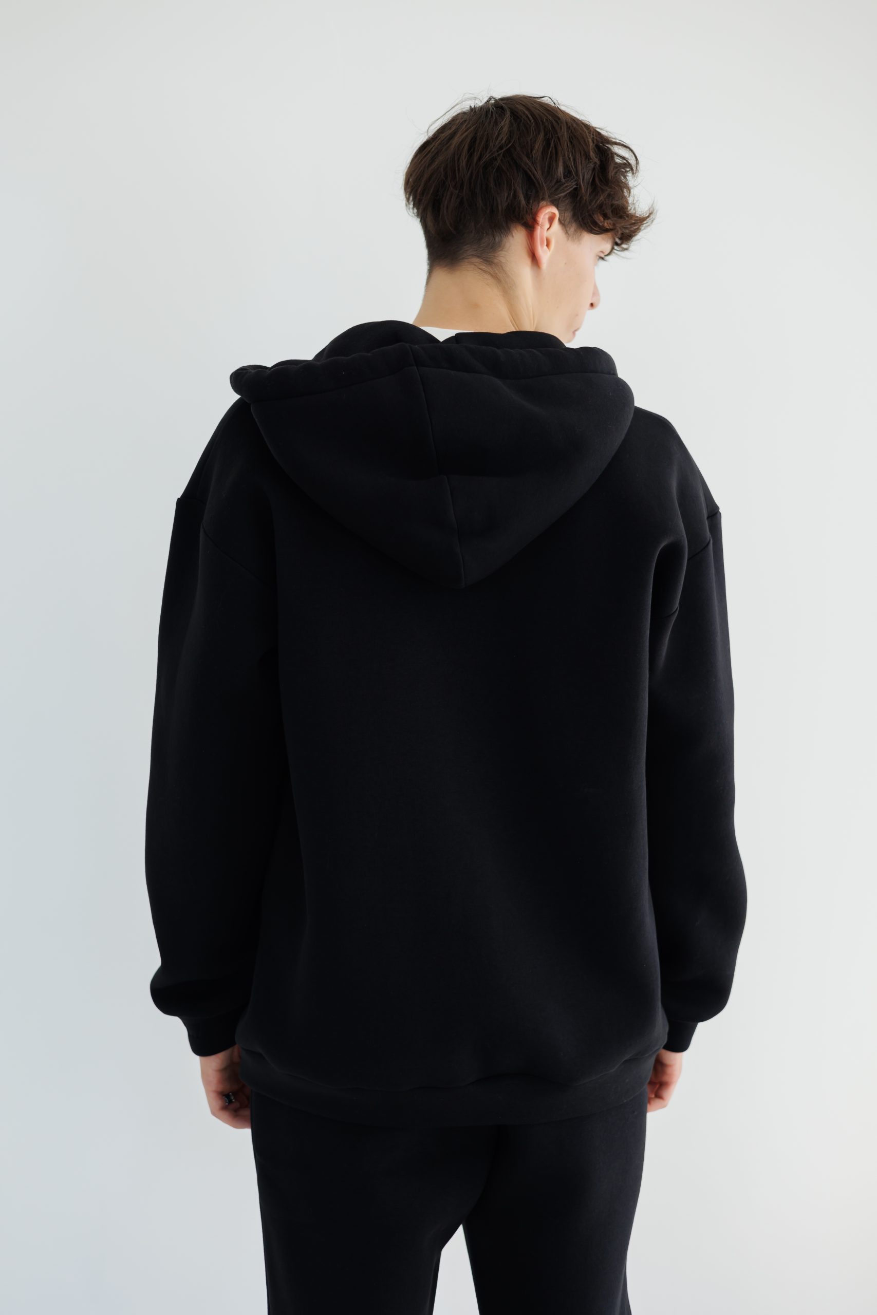 70% kokvilna, 30% poliesters. OEKO-TEX® sertificēts audums. Siltināts trīs diegu trikotāžas materiāls ar mīkstu pūciņu iekšpusē.