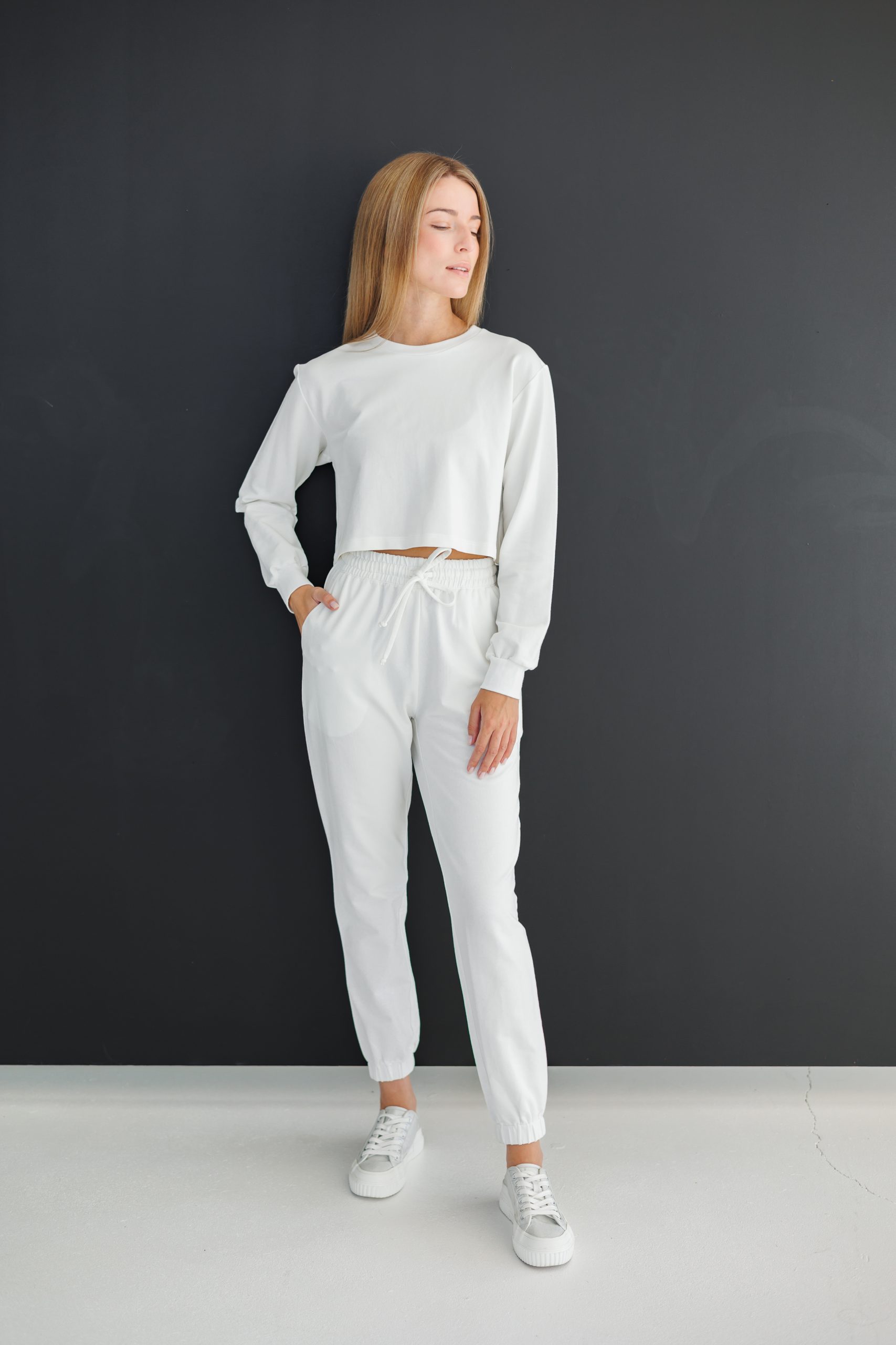 95% kokvilna, 5% elastans. OEKO-TEX® sertificēts audums. Viegls trīs diegu trikotāžas materiāls ar cilpiņu iekšpusē.