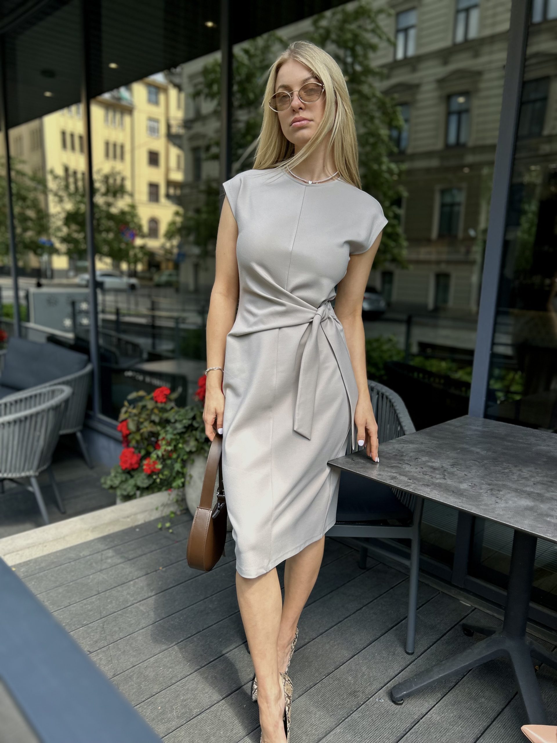 Pieguļoša piegriezuma kleita.