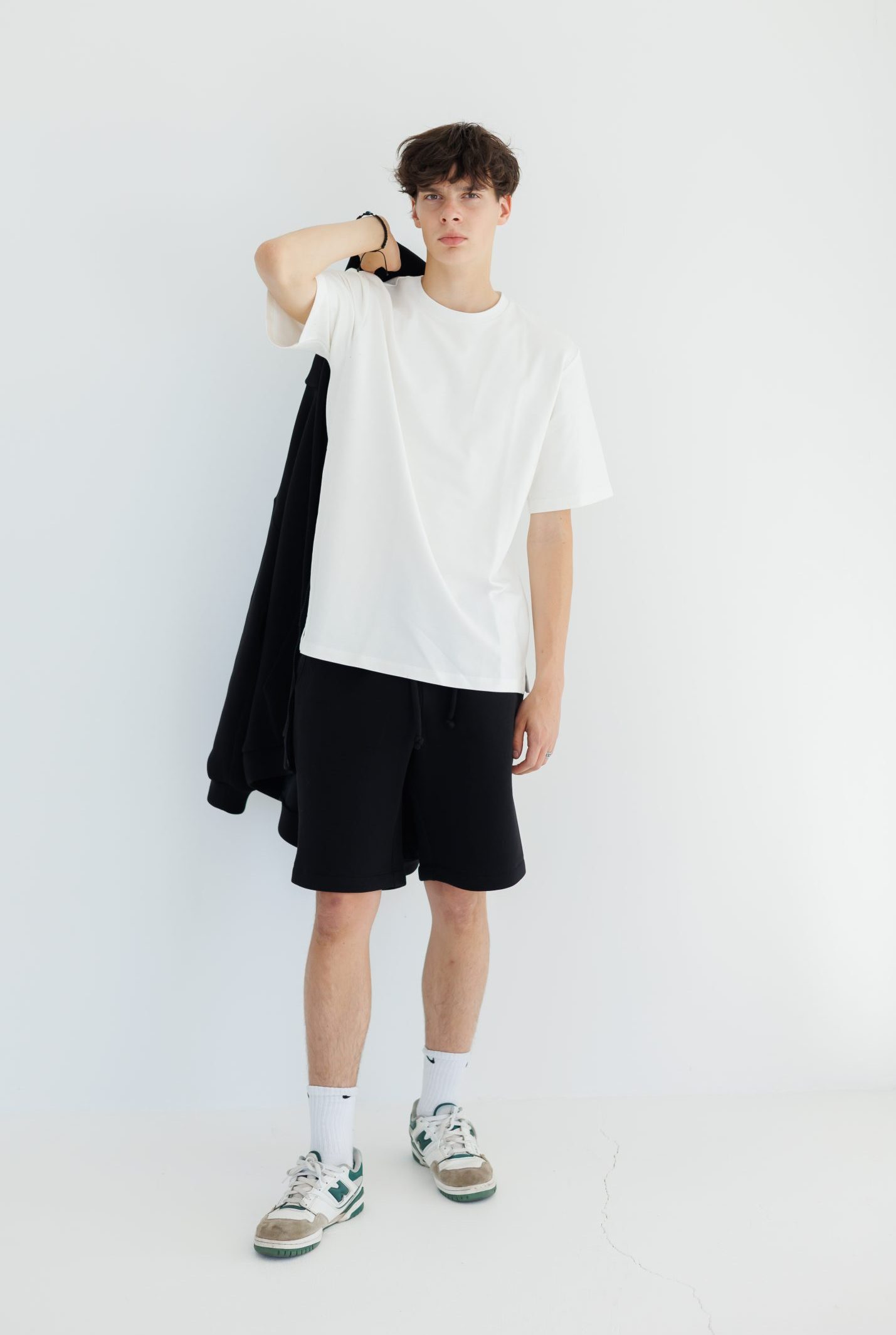 Modelim: Jaka L izmērs, šorti L izmērs. Modeļa parametri: auguma garums 194cm, krūšu apkārtmērs 92cm, viduklis apkārtmērs 85cm, gurni apkārtmērs 101cm.