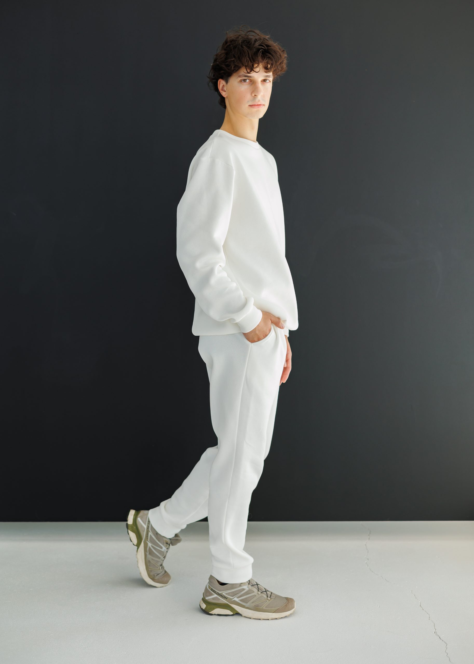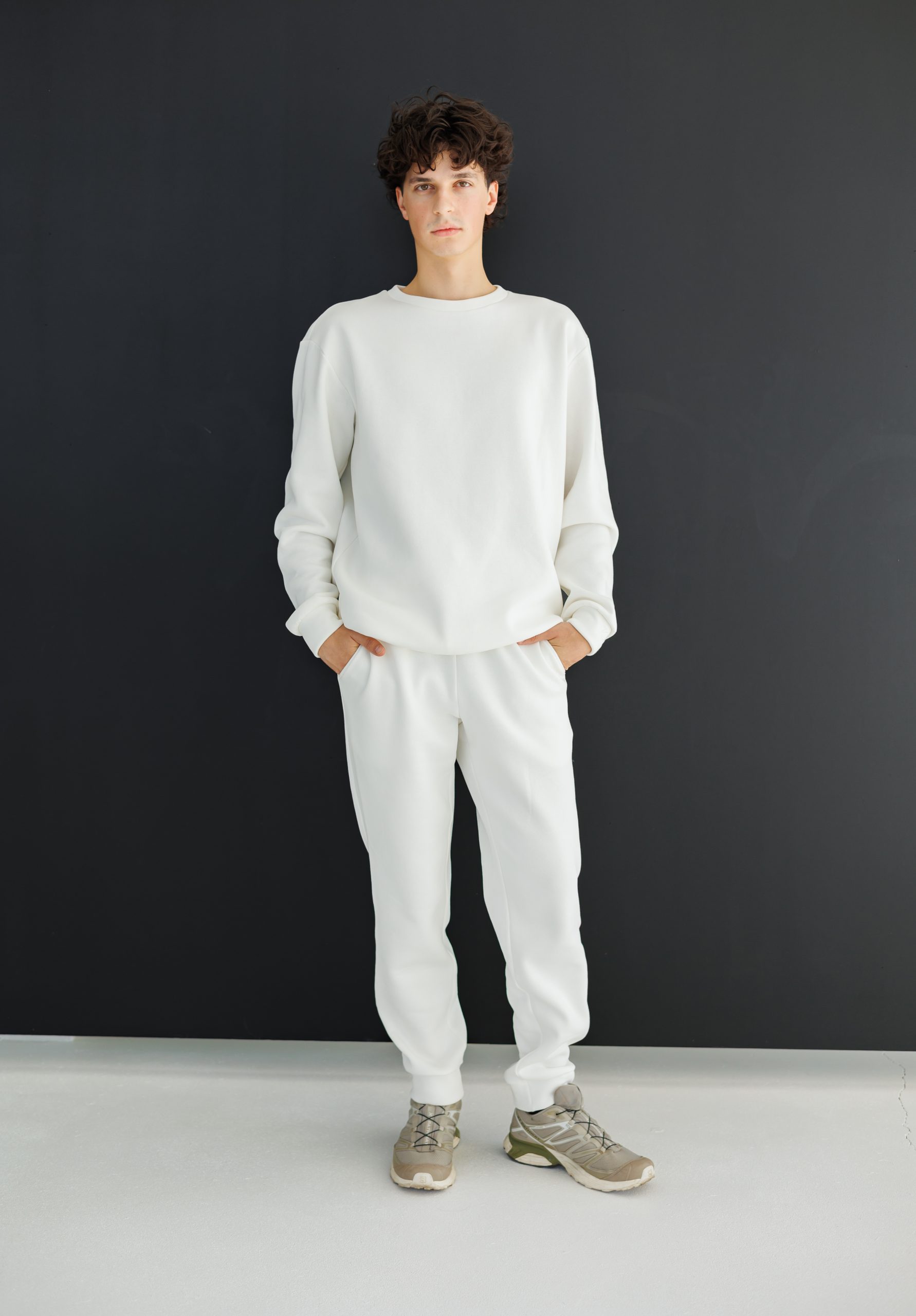 Modelim: Svitšots L izmērs, Bikses L izmērs. Modeļa parametri: auguma garums 185cm, krūšu apkārtmērs 91cm, viduklis apkārtmērs 79cm, gurni apkārtmērs 103cm.